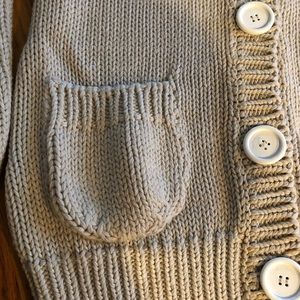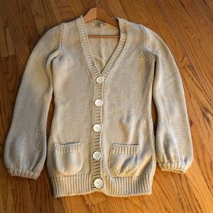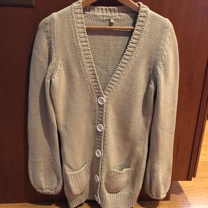 Amazing cotton Burberry khaki / cream color cardigan with slouch bell sleeve for added style. White 1" shiny buttons. Elastic as wrist.