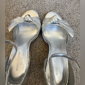 Marc Fisher - Women's Brodie Buckle Knotted Heel Sandals - Size 8.5 - Silver