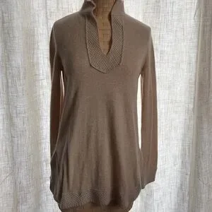 Tory Burch 100% Cashmere V Neck Sweater Beige Size M