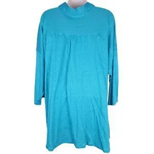 J. Jill Love Linen Mixed Media Tunic Top Shirt in Aegean Size XL