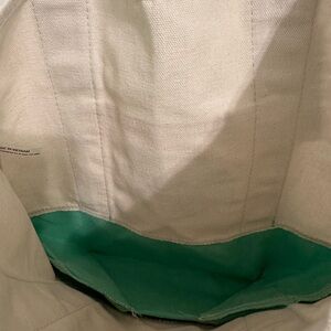Stylish and practical, this canvas tote bag features a vibrant green and cream design. Perfect for everyday use.
