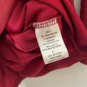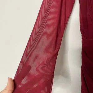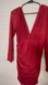 Chic red dress with long sleeves. Features a deep V-neckline. Perfect for stylish outings.