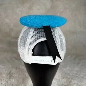 This vintage hat is in used condition with signs of wear. Most notably, the back snap is cracked. It works slightly as is, but if you wanted to wear it consistently, it would probably need to be replaced. Served well as a decoration though. Front Bill has a crack too. Please see pictures for the best idea of condition and for size tags.