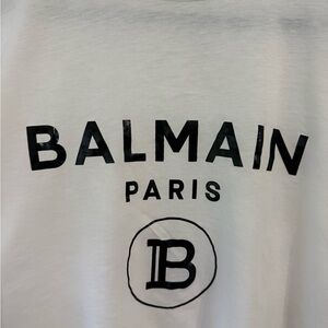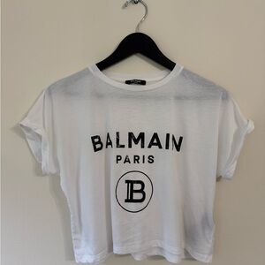 Balmain Authentic White Short Sleeve Crop Tee with logo. Never worn, tag was removed. Size XS