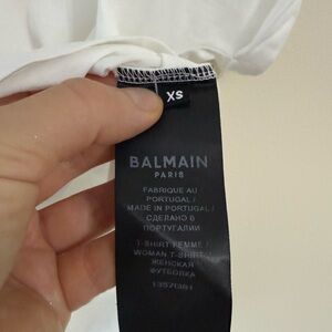 Balmain Authentic White Short Sleeve Crop Tee with logo. Never worn. Size XS