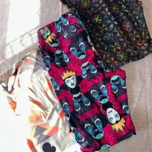 Vibrant leggings with unique graphic design. Features bold colors and artistic patterns. Perfect for a standout look.