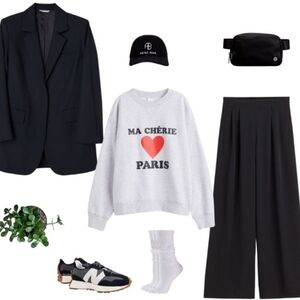 Ribbing at neckline, cuffs, and hem. Soft, brushed inside.