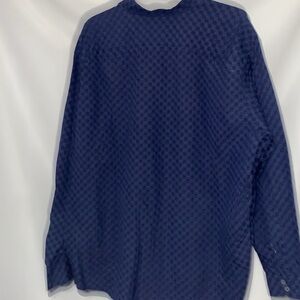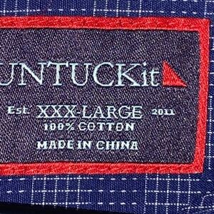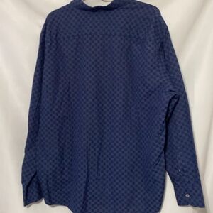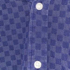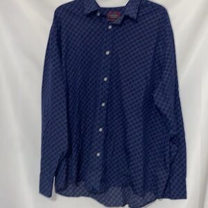 UNTUCKIT MENS SIZE XXXL BLUE GEO SMALL SQUARES Casual Button Down Shirt CLEAN 100% Cotton. Long sleeves Length measures approx 30” from shoulder to hem sleeves measure approx 23” CHEST MEASURES APPROX 28” from side to side very good clean condition