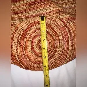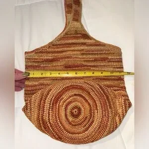 This handcrafted crochet bag features a beautiful blend of earthy tones. Perfect for adding a unique touch to any outfit.