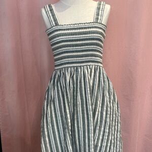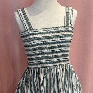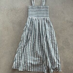Staple the Label Striped Midi Dress Size M Smocked Linen Blend Pockets Summer