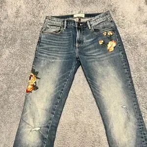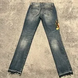 DRIFTWOOD Jeans Womens 26 Distressed Stretch Audrey Embroidered Boho Cottagecore