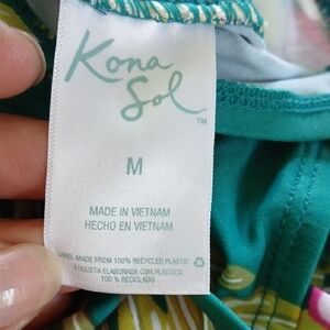 Kona Sol Green and Pink One Piece Swimwear Tropical Vibes Sz M