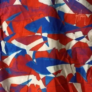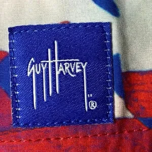 GUY HARVEY MENS XL RED WHITE BLUE SHARK DESIGN BOARD SWIM SHORTS ELASTIC WAIST LENGTH MEASURES APPROX 22” FROM WAIST TO HEM INSEAM MEASURES APPROX 8” WAIST MEASURES APPROX 20” FROM SIDE TO SIDE VERY GOOD CLEAN CONDITION