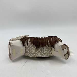 This Tory Burch crossbody captures timeless elegance with a supple brown leather exterior and suede accents. Lightweight yet structured, it’s sized for daily essentials and day-to-night outings. The classic silhouette, convenient exterior pockets, and versatile brown suede finish let you switch from errands to evenings with ease. Built for durability, it pairs smoothly with fall layers or summer minis, making it a dependable go-to bag that stays polished.
