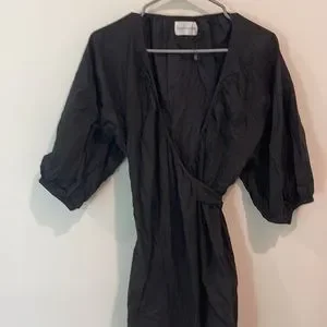 Modern Citizen Black Wrap Dress with Puff Sleeves