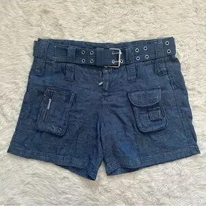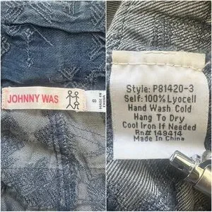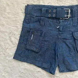 Johnny Was Zuma Denim Shorts Belted Cargo Embroidered 100% Lyocell Sz 8