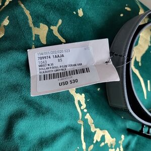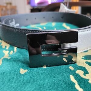 Stylish Gucci belt with a sleek black and gray design. Features a modern buckle. 100% authentic, warehouse new condition, no box or dust bags. Size 85/34, made in Italy. unisex.