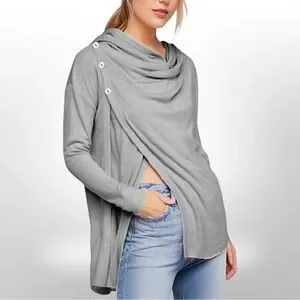 This rare Free People Bond Cardigan is the ultimate cozy-chic statement piece. Featuring a draped asymmetrical front with side buttons, relaxed hooded fit, and factory-distressed edges, it’s the perfect mix of vintage edge and modern comfort.