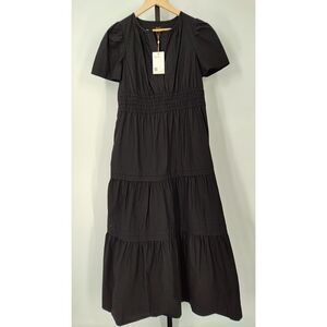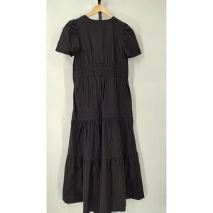 Quince Women 100% Organic Cotton Poplin Maternity Tiered Maxi Dress Black S