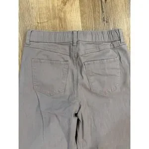 Sincerely Jules wide leg pull-on pants offer a relaxed yet polished aesthetic in a versatile grey-taupe hue. Crafted from a comfortable cotton-stretch blend, these trousers feature an elasticized drawstring waistband for an adjustable fit and a raw, frayed hem for a touch of modern edge. The straight, wide-leg silhouette provides a breezy feel, while the classic five-pocket styling adds functional detail to this effortless everyday staple.