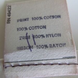 Material: Fabric 100 % Cotton - Trim 100% Cotton & 100% Nylon