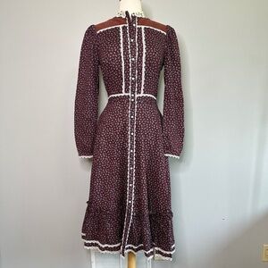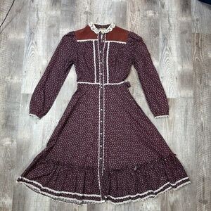 GUNNE SAX Jessica McClintock Cottagecore Prairie Midi Dress Buttons Front Sz M?