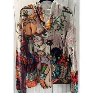 Halloween Pattern Cat Funky Geometric Hoodie Size XXL