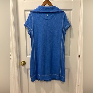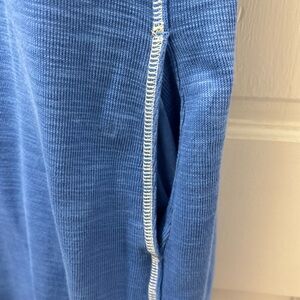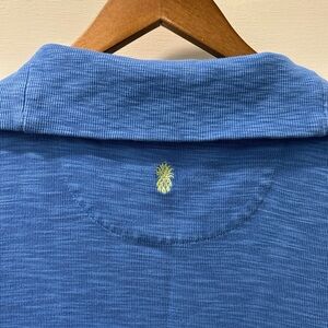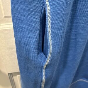 Tommy Bahama women’s Tobago Bay 1/2 zip mini dress, size large (approx.) in Palace Blue. This cute knit dress has contrasting seams and pockets making it a fun style for summer. Perfect for casual wear, golf, Resortwear or swimsuit cover up. It has short sleeves and falls to the knee. Unfortunately the size tag has been cut out so please read measurements carefully. It fits like a size large. Excellent pre owned condition.