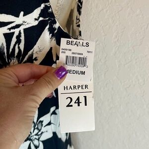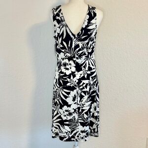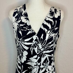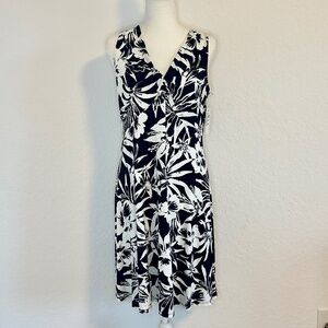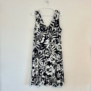 Harper 241Sleeveless Black and White Tropical Leaf Dress, Size M, NWT