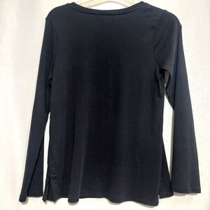 J Jill Womens SP Long Sleeve Pima Cotton Tee Crew Neck Slit Hem Black