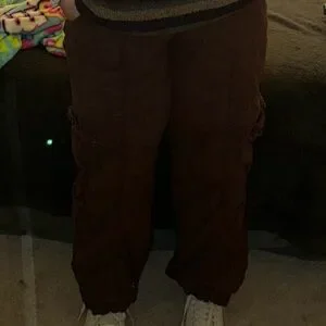 Relaxed wide-leg cargo pants in a rich brown tone. High-rise fit with utility pocket details. Casual and versatile styling. Pairs well with sneakers or a cropped top.