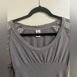 ⭐️ Gray long sleeve top, white detailing on sleeve.