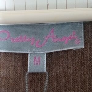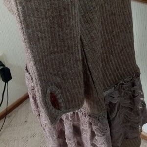 Pretty Angel Brown Long Sleeve Knit Dress with Lace Ruffle Hem Linen