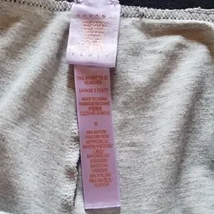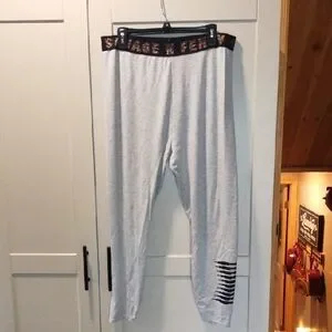 Savage X Fenty lounge leggings in light gray. Stretchy knit fabric for comfort. Elastic waistband with a branded tag. Clean minimal design for everyday wear.