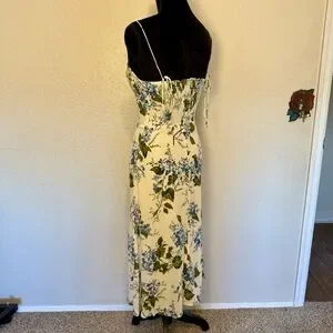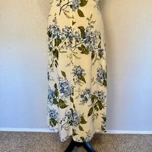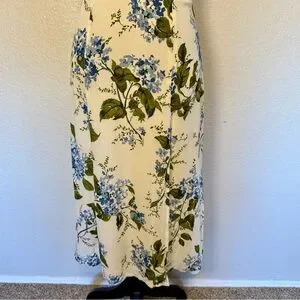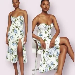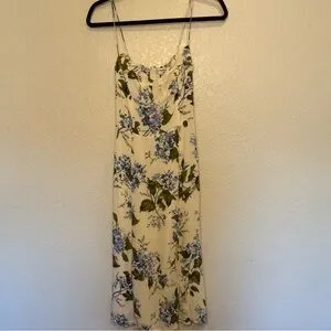 Reformation Juliette Floral Print Midi Georgette Dress White Blue Green Size 6