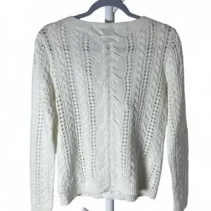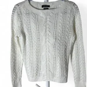 Lauren Ralph Lauren Cable Knit Boat Neck Cotton Sweater Womens M Preppy Yacht #cottagecore #knitwear