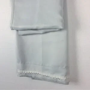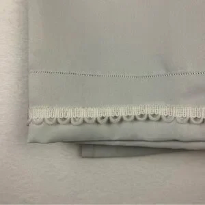 West Elm Gray Blue Curtain Panel Embroidered White Trim