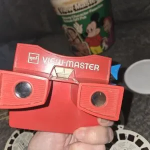 View-Master Disney Characters reel viewer and reels in blue and green. Classic View-Master playset for engaging, screen-free storytelling. Includes multiple Disney character reels for imaginative play.