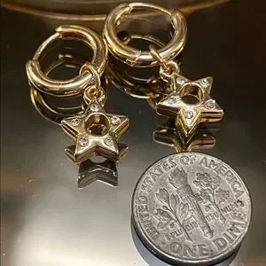 These sweet gold tone Crystal studded earrings are perfect for dressing up or every day. See photo with dime for size. They are new and come on card without tags.