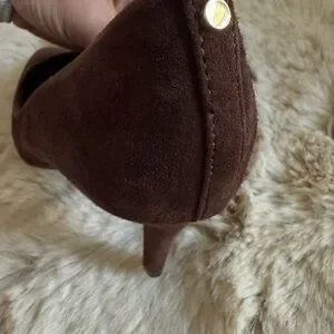 Chic suede heels in rich chocolate. Perfect for elevating any outfit.