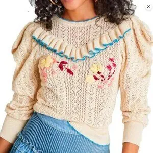 NWT LoveShackFancy Rennley Knit Sweater in Beige M $326