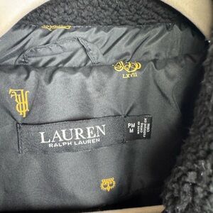 Lauren Ralph Lauren Sherpa Collar Black Diamond Quilted Jacket Size Pet Medium