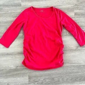 Motherhood Maternity Pink 3/4 Sleeve Ruched Sides Top Size Small