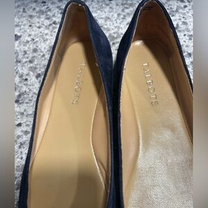 Chic navy suede flats by Talbots. Ideal for versatile wear. Comfortable and stylish.