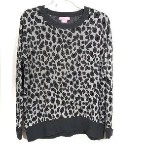 Isaac Mizrahi Animal Print Gray Black Sweater Large