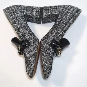 Pre-owned good used condition, a few tiny spots on left shoe on top, as seen in the last photo.