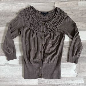 Banana Republic | Women’s Taupe Crocheted Accented Knit Cardigan | Size S
