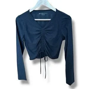 Beyond Yoga Scrunch It Up Cropped Ruched Long Sleeve Shirt Charcoal Gray Sz L