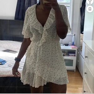 Zara Ruffle Mesh Polka Dot Dress White Black Size Small