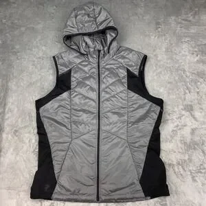 Peak Performance Alum Vest Mens Size XXL Grey Black Hybrid Hooded Puffer Running